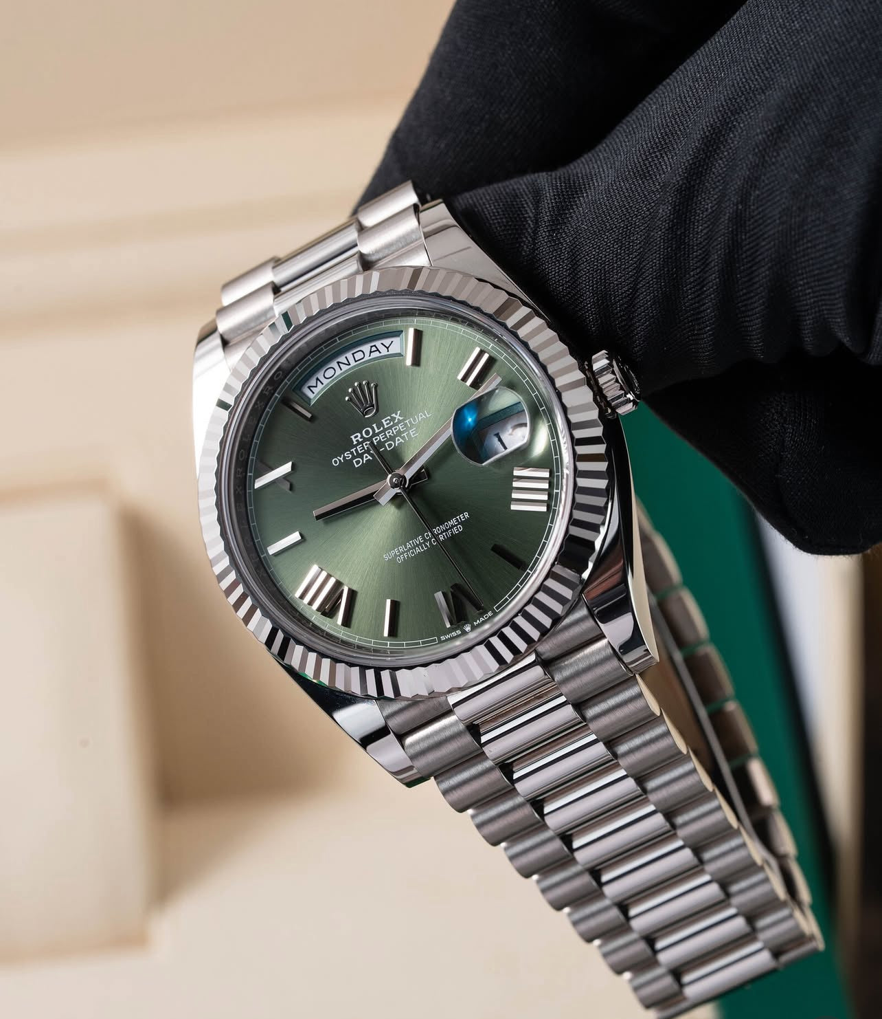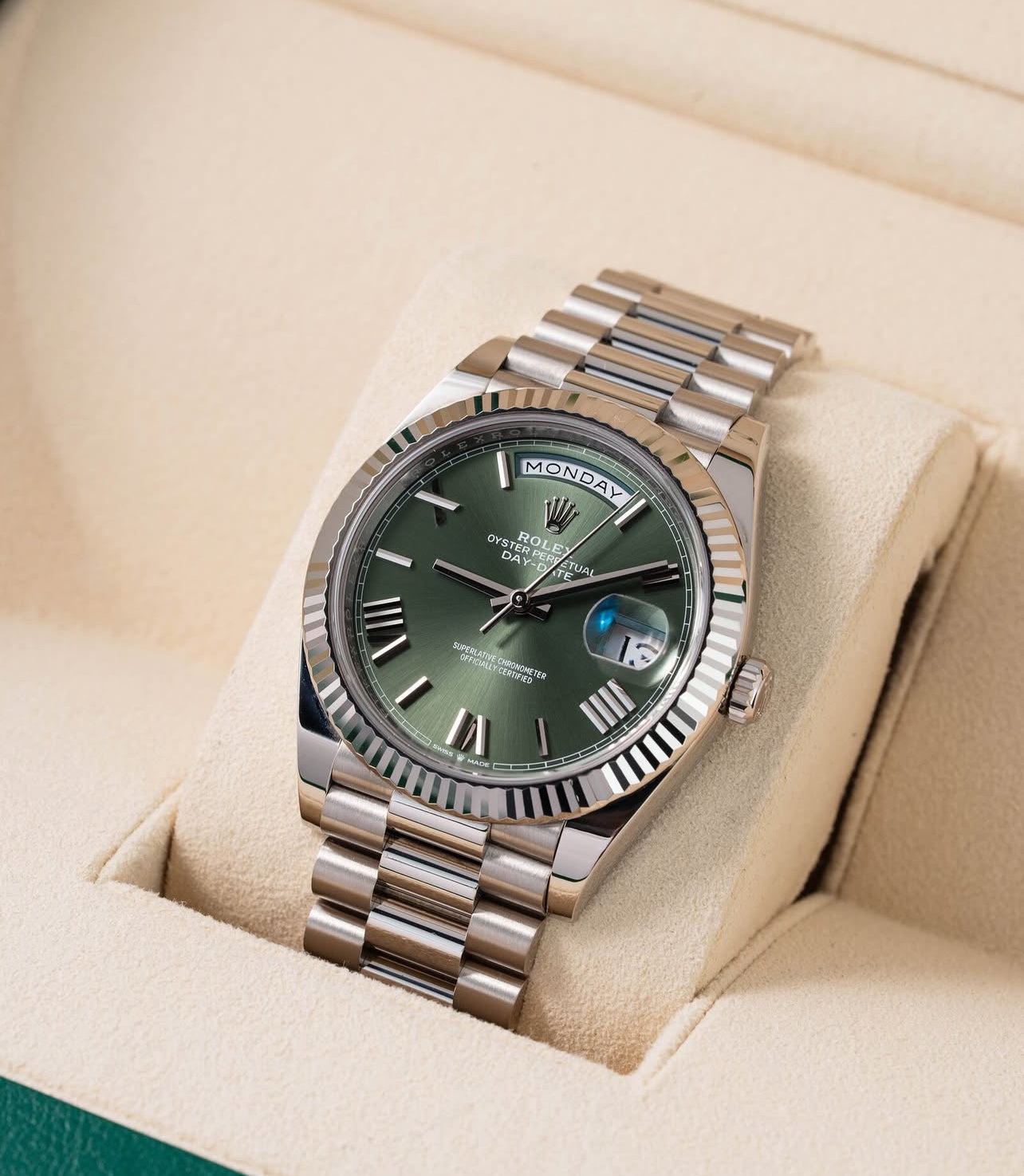 La Rolex Day-Date 40 est l’expression ultime du prestige et de l’élégance. Symbole de raffinement et de réussite, elle se distingue par son affichage du jour en toutes lettres et de la date, une signature emblématique de Rolex. Son design luxueux, associé à un mouvement automatique suisse d’une précision exceptionnelle, fait de la Day-Date 40 une montre idéale pour ceux qui recherchent excellence, confort et statut au quotidien.